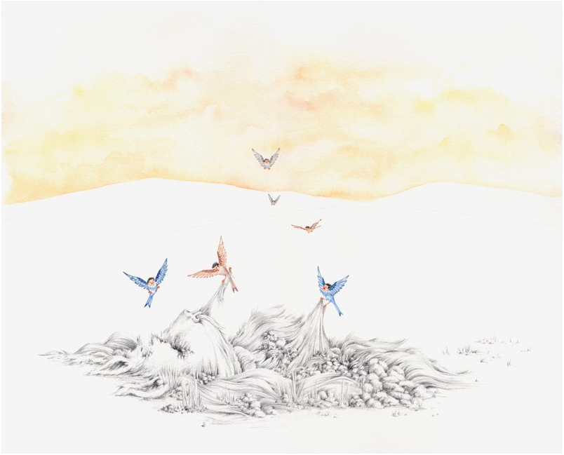 The Distant Lands: (2004- 2008) The Distant Lands are a beautiful place, vast, uninhabited and unblemished by human influence. There are many different creatures living here. As the sole explorer of these lands, I carefully observe these creatures and their social interactions. My drawings and sculptures are both a pictorial record and, at times, my interpretation of the events.